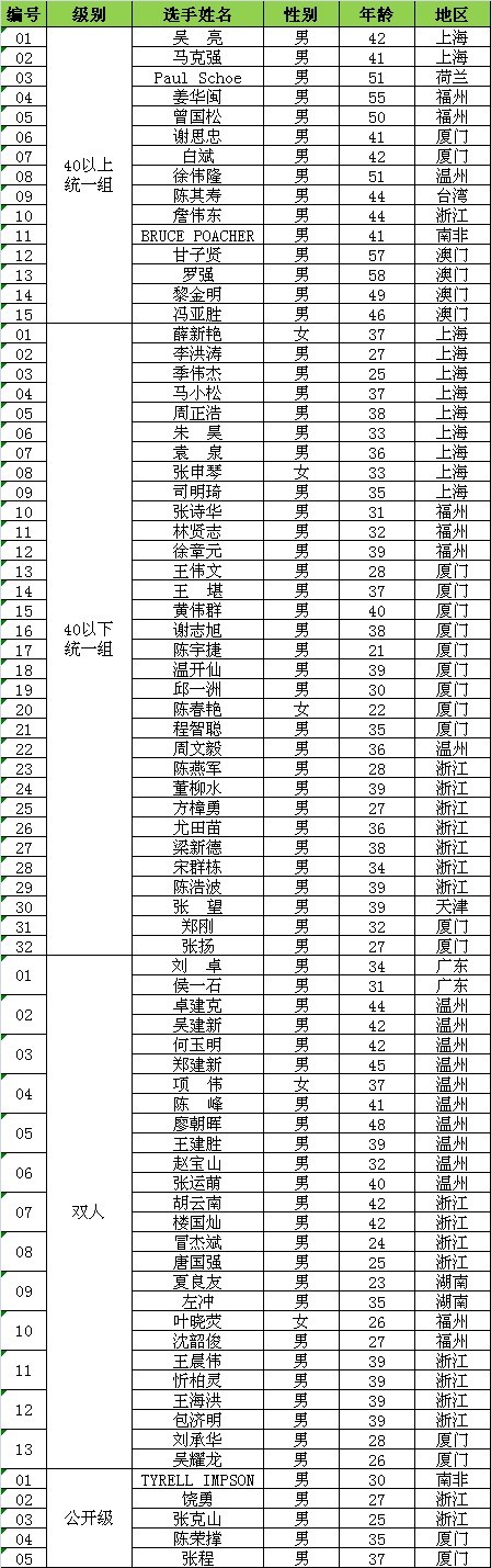 >第八屆廈門海上馬拉松獨木舟挑戰(zhàn)賽參賽選手名單