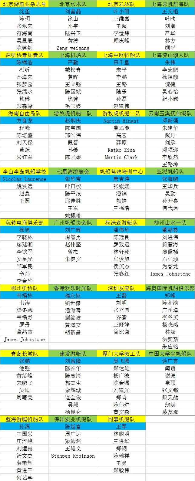 >第九屆中國俱樂部杯帆船挑戰(zhàn)賽隊員名單(新版)
