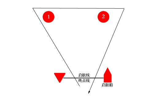 12.2 如果因風太小,需要延遲比賽,交通艇將懸掛AP旗,此時各賽船可開啟發(fā)動機,跟隨交通艇,至合適的區(qū)域,交通艇將降下AP旗,此時各賽場應關閉發(fā)動機,準備開始比賽。此時裁判船上掛上之RC旗與組委會所布紅標之間的連線即為起航線。