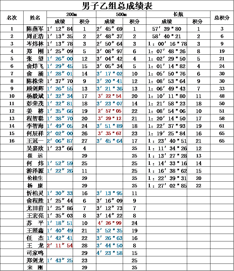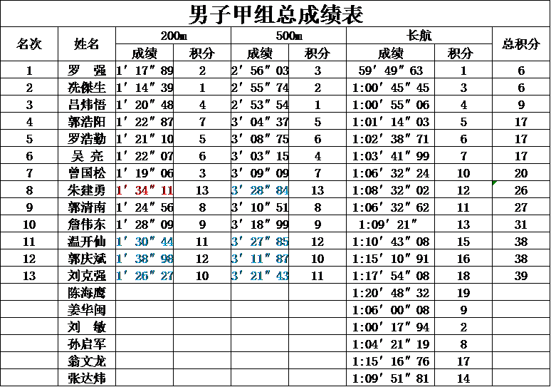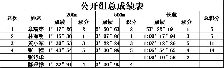 >2014年同安區(qū)海峽兩岸“大同建筑”杯獨(dú)木舟邀請(qǐng)賽成績(jī)