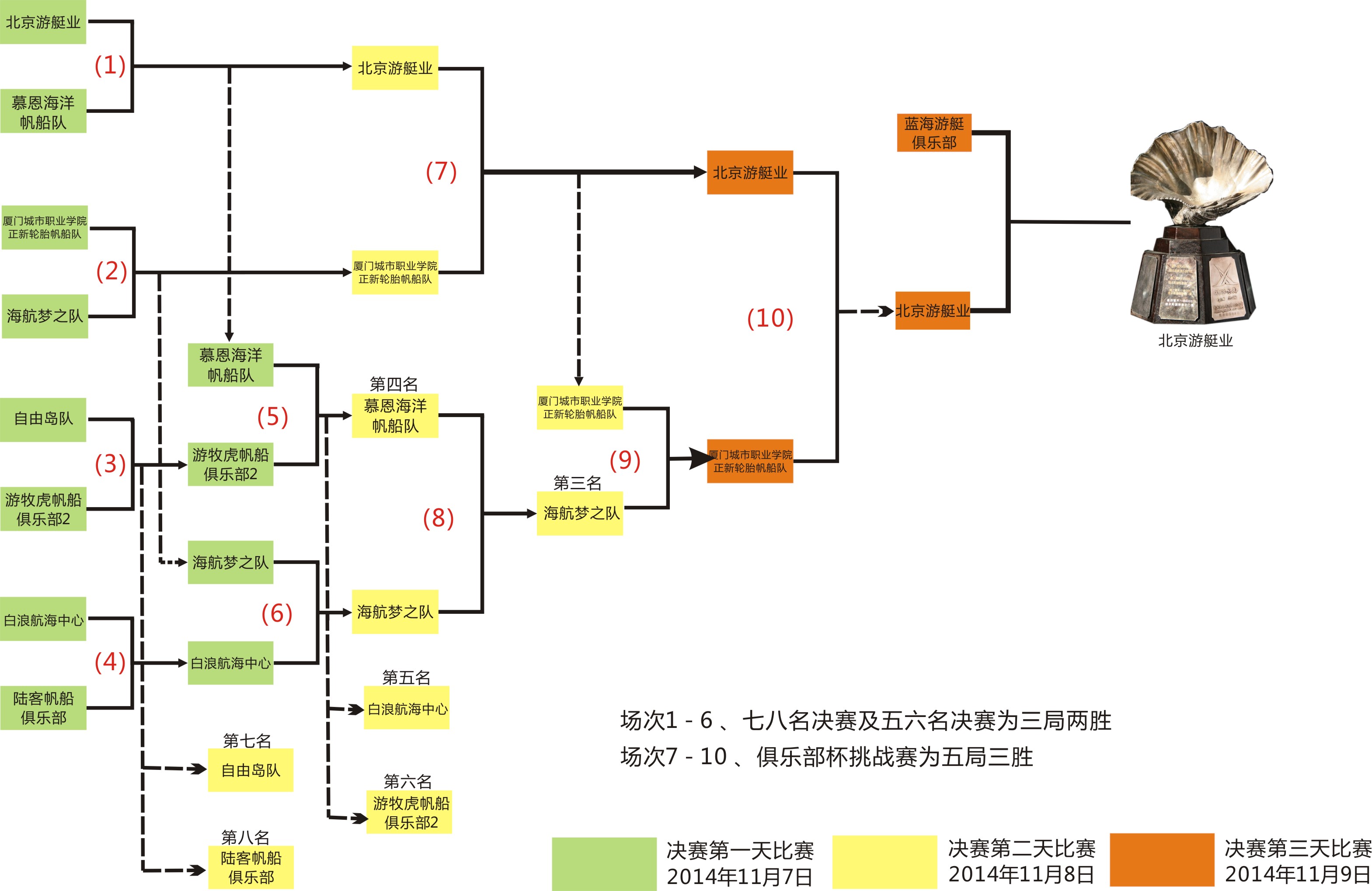 北京游艇業(yè)帆船隊取得了與上屆冠軍廈門藍海帆船俱樂部挑戰(zhàn)的資格,并且挑戰(zhàn)成功,成為了本屆俱樂部杯的最后贏家捧起了代表中國大帆船最高競技水平的中國“俱樂部杯”大貝殼獎杯。