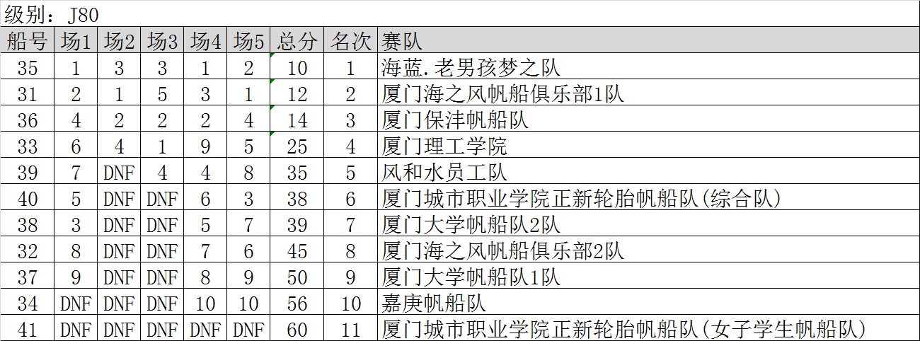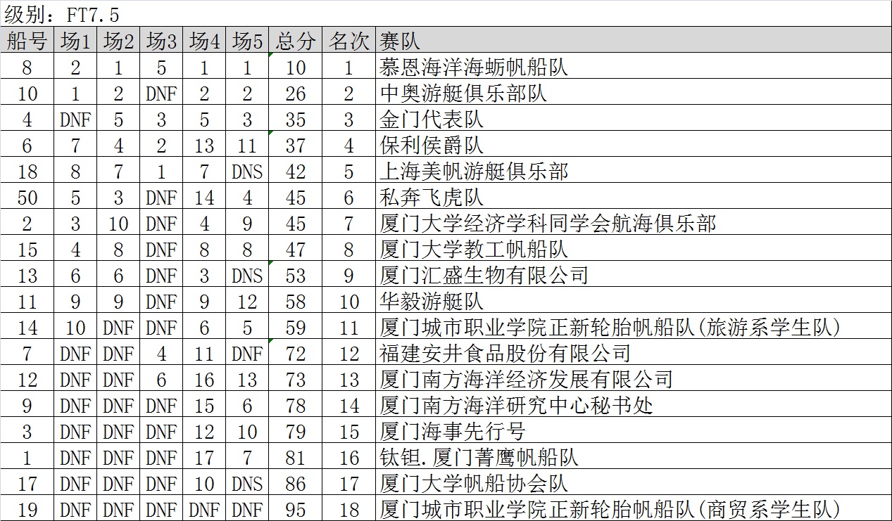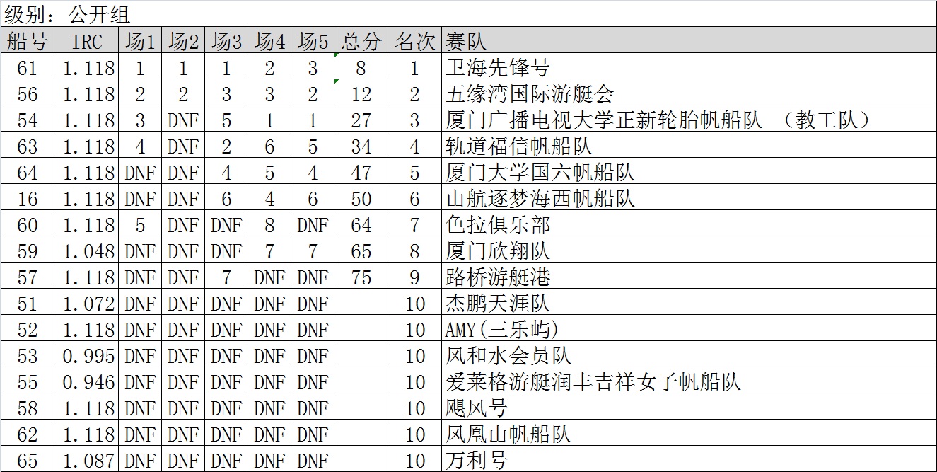 >2015廈門(mén)新年帆船賽成績(jī)表