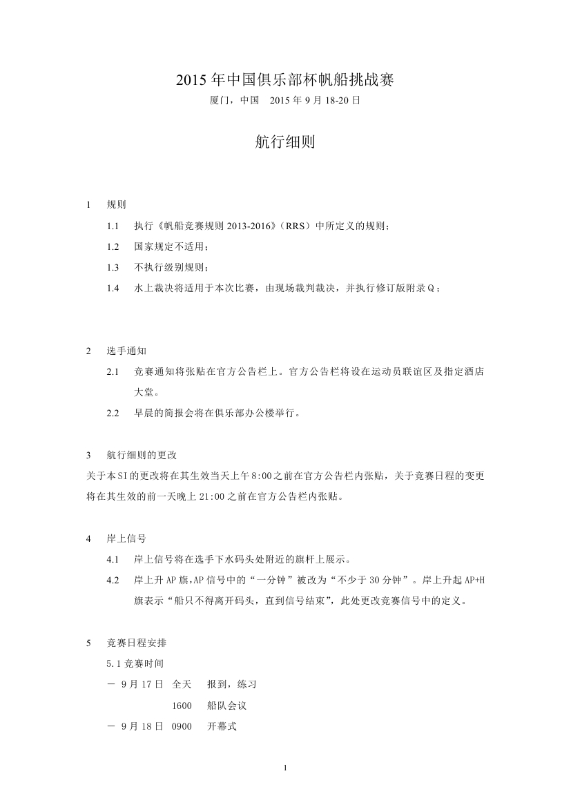 第11屆中國“俱樂部杯”帆船挑戰(zhàn)賽航行細(xì)則